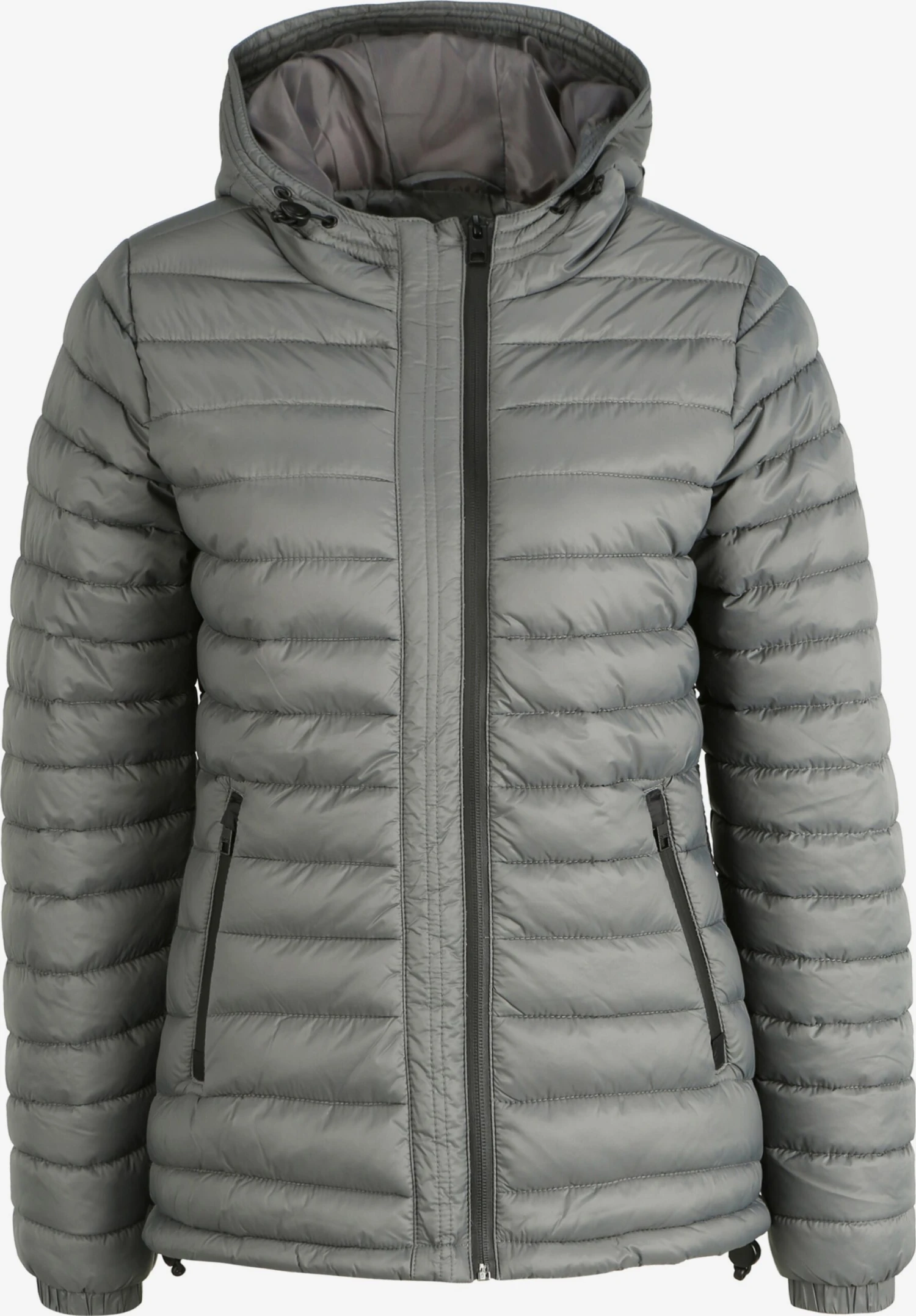 EffenGewatteerde jasRitssluitingRechte zoomMet capuchonZakken aan de zijkantOp staal nadenLicht gevoerd